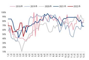 圖3:湖北省建材無縫厚壁鋼管廠家螺紋鋼產(chǎn)能利用率(單位:%)