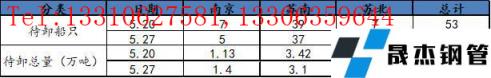 此次調(diào)研選取了南京、蘇州、無(wú)錫、常州、南通、徐州、揚(yáng)州、鹽城八個(gè)城市,以建筑厚壁無(wú)縫鋼管為主要庫(kù)存的20家倉(cāng)庫(kù)。通過(guò)匯總了解,當(dāng)前樣本倉(cāng)庫(kù)碼頭累計(jì)待卸船只總計(jì)48只,待卸總量達(dá)5.47萬(wàn)噸。