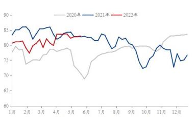 首先,供給端方面,據(jù)調(diào)研顯示,截至2022年5月27日,37家熱軋板卷生產(chǎn)企業(yè)中,無縫厚壁鋼管廠家產(chǎn)能利用率為80.87%,能夠從圖2可以觀察到2022年1-5月份,熱軋產(chǎn)能利用率是低于2021年同期水平,因此無縫厚壁鋼管廠家熱軋產(chǎn)量給到市場的供給壓力是在持續(xù)減弱,對于熱軋價格起到了一定的支撐作用。再來看下無縫厚壁鋼管廠家的冷軋產(chǎn)能利用率, 2020年與2021年冷軋產(chǎn)能利用率均值分別為77.96%與81.05%。截至2022年5月27日,29家冷軋板卷生產(chǎn)企業(yè)中,冷軋產(chǎn)能利用率為83.04%,從年同比數(shù)據(jù)對比之下,能夠反映出冷軋產(chǎn)能利用率已經(jīng)達(dá)到相對飽和狀態(tài)。