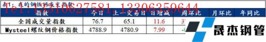 訊:全國建筑厚壁無縫鋼管成交量監(jiān)測,成交量相對指數(shù)來看,全國76.7增11.6,北方59.3增6.3,華東99.9增18.2,南方63.1增7.9。今日螺紋鋼價格指數(shù)4788.9,較上一交易日增7.99。