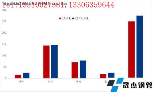 四川區(qū)域:五月四川區(qū)域無縫厚壁鋼管廠家螺紋鋼實(shí)際產(chǎn)量144.38萬噸,六月計(jì)劃產(chǎn)量147.1萬噸,計(jì)劃產(chǎn)量增加2.72萬噸,環(huán)比增加1.88%。其中GH螺紋軋線投產(chǎn)產(chǎn)量有所增加。