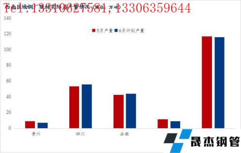 四川區(qū)域:五月四川區(qū)域無縫厚壁鋼管廠家線材實(shí)際產(chǎn)量53.27萬噸,六月計(jì)劃產(chǎn)量56萬噸,計(jì)劃產(chǎn)量增加2.73萬噸,環(huán)比增加5.12%。其中LG5月30號開始恢復(fù)正常生產(chǎn),產(chǎn)量有所增加。
