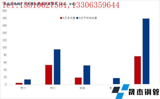 五月西南無縫厚壁鋼管廠家線材直供量25.75萬噸,市場投放量93.62萬噸。分區(qū)域來看,四川無縫厚壁鋼管廠家線材直供量13.55萬噸,市場投放量42.15萬噸;重慶無縫厚壁鋼管廠家線材沒有直供量,市場投放量12萬噸;云南無縫厚壁鋼管廠家螺紋鋼直供量11.2萬噸,市場投放量31.27萬噸;貴州無縫厚壁鋼管廠家線材直供量1萬噸,市場投放量8.2萬噸。