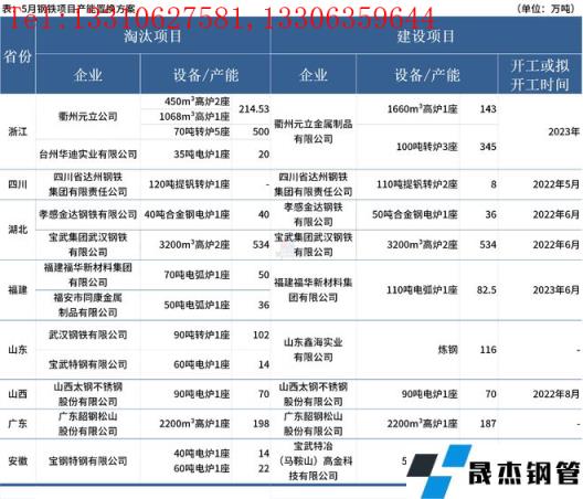 據(jù)不完全統(tǒng)計(jì),5月國(guó)內(nèi)9家無(wú)縫厚壁鋼管廠家發(fā)布鋼鐵產(chǎn)能置換方案。其中,涉及新建煉鋼產(chǎn)能693.5萬(wàn)噸,新建煉鐵產(chǎn)能864萬(wàn)噸;涉及淘汰煉鋼產(chǎn)能868萬(wàn)噸,淘汰煉鐵產(chǎn)能946.53萬(wàn)噸。