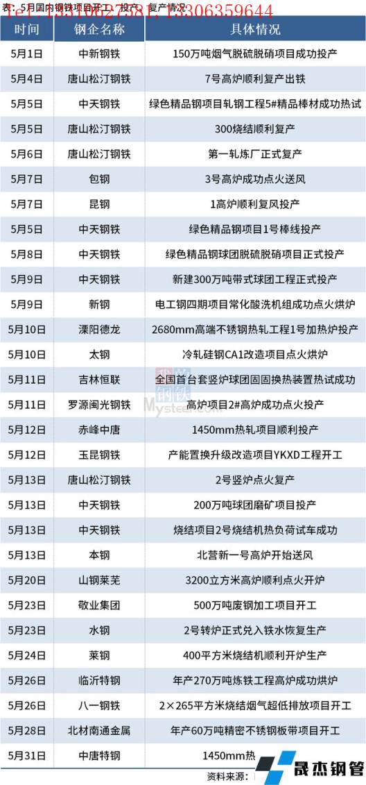 免責(zé)聲明:本網(wǎng)站(山東聊城晟杰無縫鋼管廠m.abagaf.com)刊載的“5月國內(nèi)29個(gè)鋼鐵項(xiàng)目開工、投產(chǎn)或復(fù)產(chǎn)”等均源于網(wǎng)絡(luò),版權(quán)歸原作者所有,且僅代表原作者觀點(diǎn),本文所載信息僅供參考。轉(zhuǎn)載僅為學(xué)習(xí)與交流之目的,如無意中侵犯您的合法權(quán)益,請及時(shí)聯(lián)系刪除。本網(wǎng)站刊登此篇文章并不意味著本站贊同其觀點(diǎn)或證實(shí)其內(nèi)容的真實(shí)性,我們不對其科學(xué)性、嚴(yán)肅性等作任何形式的保證。如果侵犯了您的版權(quán),請盡快聯(lián)系我們予以撤銷,謝謝合作!