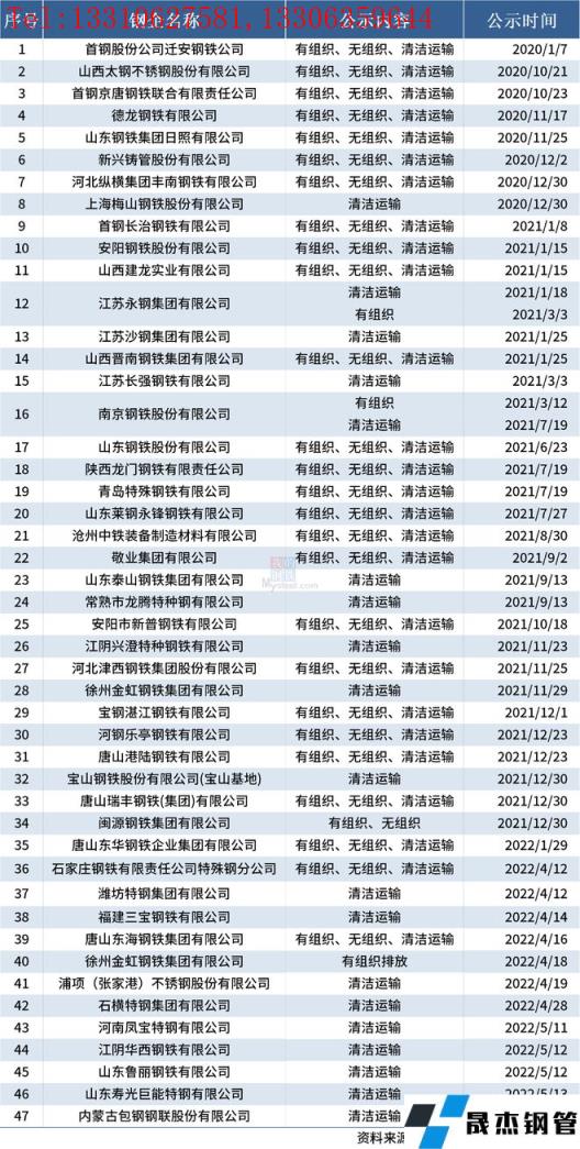 自2020年8月起,中國鋼鐵工業(yè)協(xié)會(huì)開展了鋼鐵企業(yè)超低排放改造和評(píng)估監(jiān)測(cè)進(jìn)展情況公示工作。截至2022年5月31日,已有47家鋼鐵企業(yè)在鋼協(xié)網(wǎng)站進(jìn)行公示。5月以來新增5家企業(yè),分別為河南鳳寶特鋼、江陰華西鋼鐵、山東魯麗鋼鐵、山東壽光巨能特鋼和內(nèi)蒙古包鋼。