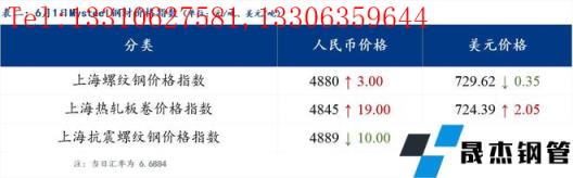 分地區(qū)方面,上海螺紋鋼價(jià)格指數(shù)4880,上漲3.0;上海熱軋板卷價(jià)格指數(shù)4845,上漲19.0。(單位:元/噸)