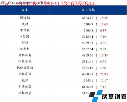 6月1日普鋼絕對(duì)價(jià)格指數(shù)變化:綜合指數(shù)5051.85,上漲9.41;螺紋鋼指數(shù)4804.42,上漲15.55;線材指數(shù)5204.9,上漲12.63;熱軋板卷指數(shù)4869.56,上漲10.33;冷軋板卷指數(shù)5341.41,下跌0.78;中厚板指數(shù)5066.8,上漲6.37。