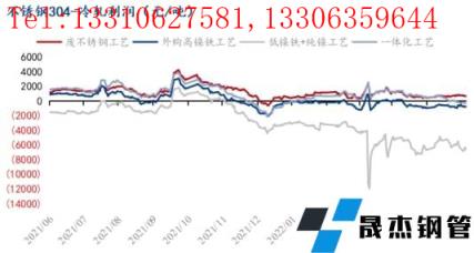 下游不銹鋼實際需求難有明顯改善,300系不銹鋼終端需求依舊疲軟,青山周二300系開盤價格下跌600元/噸。目前一體化工藝冶煉304冷軋成本19661元/噸,利潤率-1.3%。