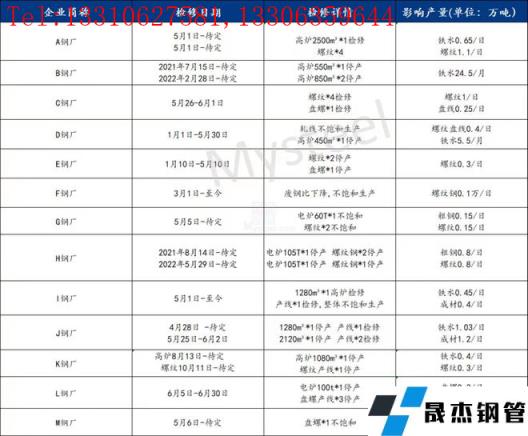 截至6月3日,省內(nèi)螺紋鋼產(chǎn)量51.16萬(wàn)噸,同比2020年下降26.62萬(wàn)噸,降幅達(dá)到34.22%。省內(nèi)螺紋鋼開工率為51.3%,同比2020年下降26.69個(gè)百分點(diǎn)。可以發(fā)現(xiàn)受宏觀環(huán)境、新冠疫情影響,省內(nèi)無(wú)縫厚壁鋼管廠家5月份整體噸鋼利潤(rùn)不佳,特別是今年又有粗鋼壓減任務(wù),因此無(wú)縫厚壁鋼管廠家也有在利潤(rùn)較差時(shí)期減產(chǎn)的動(dòng)機(jī),因此5月檢修較多,產(chǎn)量較去年同期明顯下滑。