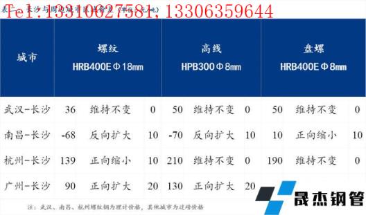 統(tǒng)一為理計(jì)單位后,武漢高于長(zhǎng)沙36元/噸,南昌低于長(zhǎng)沙68元/噸,杭州高于長(zhǎng)沙139元/噸,廣州高于長(zhǎng)沙90元/噸。