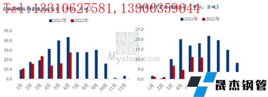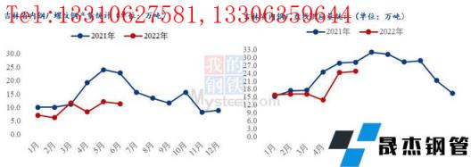 螺紋鋼方面,6月省內(nèi)及省外無縫厚壁鋼管廠家對吉林省合計投放量預(yù)計27.3萬噸,月環(huán)比增加11.5萬噸,月環(huán)比上升72.4%,年同比減少15.7萬噸,年同比下降36.6%。盤線方面,6月省內(nèi)及省外無縫厚壁鋼管廠家對吉林省合計投放量10.8萬噸,月環(huán)比減少0.3萬噸,月環(huán)比下降39.4%,年同比減少7萬噸,年同比下降39.4%。