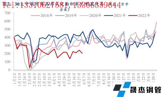 2020年上半年三度降準(zhǔn),LPR利率兩度下調(diào),5年期以上LPR累計降幅達(dá)15個基點。2021年12月至今已有兩輪降準(zhǔn),5年期以上LPR兩次條降,首套房房貸利率下限再降20個基點。相比于2020年上半年,房地產(chǎn)行業(yè)流動性和購房成本似乎改善不少。但是,2020年下半年后,兩個重磅的環(huán)境變量出現(xiàn),即“三道紅線”和“兩個集中”,在較大程度上管住了資金流向房地產(chǎn)行業(yè)的閥門,更改變了市場主體(房企、居民和銀行)的預(yù)期(參見圖5和圖6)。所以,我們發(fā)現(xiàn),目前高頻數(shù)據(jù)仍然顯示商品房成交面積并未明顯改善(參見圖7)。因此,我們可以判斷,即使有信貸政策刺激,“三道紅線”和“兩個集中”這兩個環(huán)境變量也將延緩房地產(chǎn)行業(yè)反彈的速度。