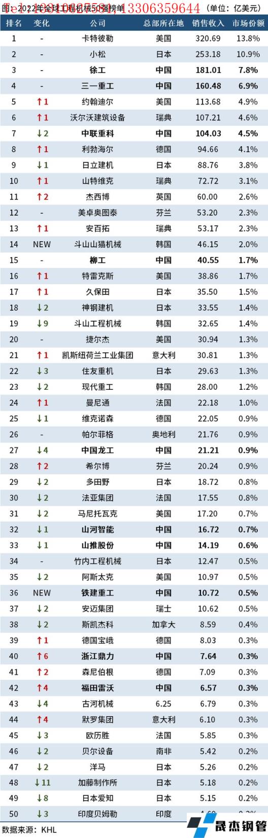 近日,世界領(lǐng)先的工程信息提供商英國(guó)KHL集團(tuán)發(fā)布了2022全球工程機(jī)械制造商50強(qiáng)排行榜。詳細(xì)梳理了該榜單內(nèi)容。