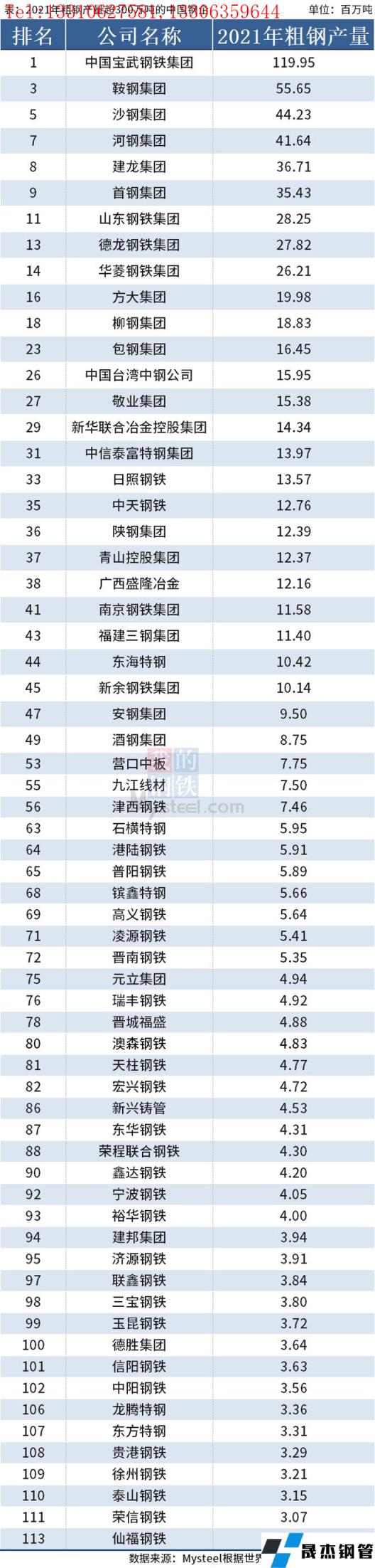 免責(zé)聲明:本網(wǎng)站(山東聊城晟杰無(wú)縫鋼管廠m.abagaf.com)刊載的“2021年中國(guó)64家重點(diǎn)鋼企粗鋼產(chǎn)量排名”等均源于網(wǎng)絡(luò),版權(quán)歸原作者所有,且僅代表原作者觀點(diǎn),本文所載信息僅供參考。轉(zhuǎn)載僅為學(xué)習(xí)與交流之目的,如無(wú)意中侵犯您的合法權(quán)益,請(qǐng)及時(shí)聯(lián)系刪除。本網(wǎng)站刊登此篇文章并不意味著本站贊同其觀點(diǎn)或證實(shí)其內(nèi)容的真實(shí)性,我們不對(duì)其科學(xué)性、嚴(yán)肅性等作任何形式的保證。如果侵犯了您的版權(quán),請(qǐng)盡快聯(lián)系我們予以撤銷,謝謝合作!