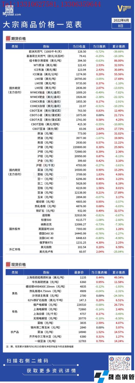 免責(zé)聲明:本網(wǎng)站(山東聊城晟杰無(wú)縫鋼管廠m.abagaf.com)刊載的“俄烏局勢(shì)丨大宗商品價(jià)格一覽表(6月8日)”等均源于網(wǎng)絡(luò),版權(quán)歸原作者所有,且僅代表原作者觀點(diǎn),本文所載信息僅供參考。轉(zhuǎn)載僅為學(xué)習(xí)與交流之目的,如無(wú)意中侵犯您的合法權(quán)益,請(qǐng)及時(shí)聯(lián)系刪除。本網(wǎng)站刊登此篇文章并不意味著本站贊同其觀點(diǎn)或證實(shí)其內(nèi)容的真實(shí)性,我們不對(duì)其科學(xué)性、嚴(yán)肅性等作任何形式的保證。如果侵犯了您的版權(quán),請(qǐng)盡快聯(lián)系我們予以撤銷,謝謝合作!