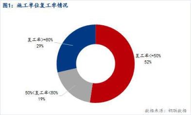 2、截至8日,共有137個(gè)項(xiàng)目復(fù)工,樣本項(xiàng)目中整體復(fù)工率44.92%;