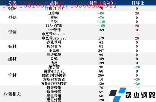 表:6月9日唐山鋼市主要品種利潤(rùn)一覽(單位:元/噸)