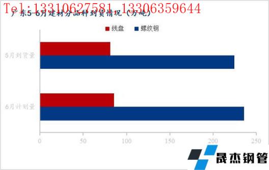 圖四:廣東建材5-6月分品種到貨情況(單位:萬(wàn)噸)