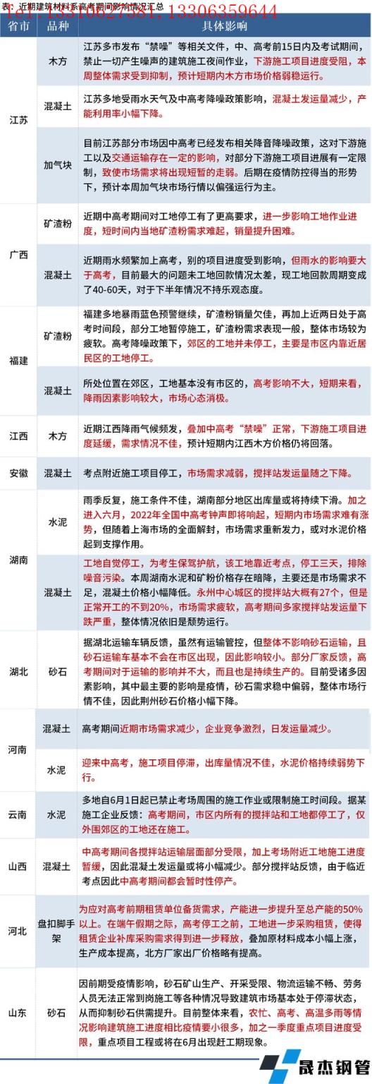 截至6月10日,據(jù)百年建筑網(wǎng)調(diào)研顯示,共有12個省市建筑市場和建筑工地建筑工地進度受到明顯影響。整體來看,近兩周全國為為中高考做準(zhǔn)備,及多地疫情隱有再抬頭跡象,加之暴雨天氣遍及多地,對于工程項目恢復(fù)并不榮樂觀,短期整體市場仍會呈現(xiàn)供需兩弱局面。具體情況如下: