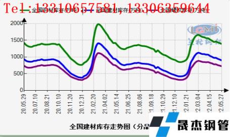 截止5月27日,全國無縫鋼管 厚壁鋼管社會庫存連續(xù)3周下降:據(jù)云商平臺監(jiān)測數(shù)據(jù)顯示,5月27日,全國無縫鋼管 厚壁鋼管社會庫存指數(shù)為151.1點,比上月下降3.82%,比去年同期上升10.99%;其中建材社會庫存指數(shù)為217.9點,比上月下降8.02%,比去年同期上升14.22%;螺紋鋼社會庫存量為721.37萬噸,比上月下降7.75%,比去年同期上升13.87%。國內(nèi)建材庫存保持去庫,但同比去年還是明顯偏高。