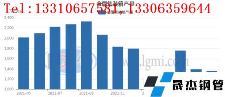 國內(nèi)下游產(chǎn)品供應分品種來看,5月份國內(nèi)金屬集裝箱產(chǎn)量為1365萬立方米,環(huán)比4月份減產(chǎn)約33.4萬立方米。同比21年同期下降約658.1萬立方米。