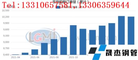 5月份國內(nèi)手持船舶訂單量累計為10220萬載重噸,環(huán)比4月份減少約27萬載重噸。同比21年同期增加約1801萬載重噸。