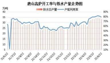據(jù)網(wǎng)調(diào)研數(shù)據(jù)顯示:截至6月22日,唐山區(qū)域高爐產(chǎn)能利用率78.89%,環(huán)比上月下跌0.11個(gè)百分點(diǎn);鐵水日均產(chǎn)量較上月減少0.05萬(wàn)噸。
