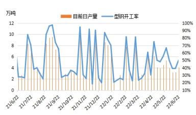 圖6 唐山型鋼開(kāi)工率及日產(chǎn)量走勢(shì)圖