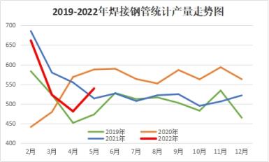 圖1 2019-2022年國(guó)內(nèi)焊接無(wú)縫鋼管產(chǎn)量示意圖