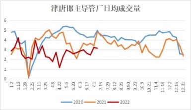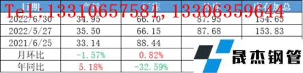 從焊鍍管品種來(lái)看,截至6月30日,上半年在統(tǒng)計(jì)11家管廠日均出貨量2.69萬(wàn)噸,同比去年同期下降26.90%,同比2020年同期下降30.49%,其中6月環(huán)比上月增長(zhǎng)1.32%,上半年高預(yù)期、高供應(yīng)持續(xù)發(fā)酵,但需求受疫情等影響,持續(xù)后延,管廠日均出貨峰值4.2萬(wàn),為農(nóng)歷春節(jié)前的冬儲(chǔ)階段。上半年在統(tǒng)計(jì)國(guó)內(nèi)各區(qū)域貿(mào)易商日均出貨量峰值在3月初,均值下滑24.63%,其中6月處于上半年平均日出貨量中線上方水平,較均值增長(zhǎng)9.19%,較年內(nèi)峰值下滑17%。7月價(jià)格跌勢(shì)超出預(yù)期,終端實(shí)際需求釋放仍將有限,預(yù)計(jì)7、8月份仍是一個(gè)高庫(kù)低需的景象;同時(shí),厚壁鋼管產(chǎn)業(yè)鏈虧損程度亦超預(yù)期,關(guān)注庫(kù)存的下降斜率變化。