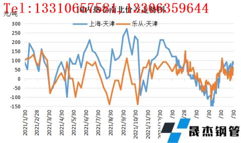 另外,受需求低迷拖累熱卷市場(chǎng)南北價(jià)格難以拉開,資源多集中在當(dāng)?shù)貐^(qū)域消化,難以實(shí)現(xiàn)南北流通,也在一定程度上加劇了市場(chǎng)購(gòu)銷難度,側(cè)面反饋了終端需求的低迷。特別是3月下旬到5月中旬的一段時(shí)間,熱卷北方價(jià)格持續(xù)高于華南以及華東成交。據(jù)云商平臺(tái)監(jiān)測(cè)數(shù)據(jù)顯示,上半年南北區(qū)域價(jià)差持續(xù)低位,多數(shù)時(shí)間不足100元區(qū)間。截止到6月底,上海-天津熱卷區(qū)域價(jià)差為80元,樂從-天津價(jià)差為60元。而天津到華東海運(yùn)費(fèi)120-130元,天津到華南運(yùn)費(fèi)為180-190元。