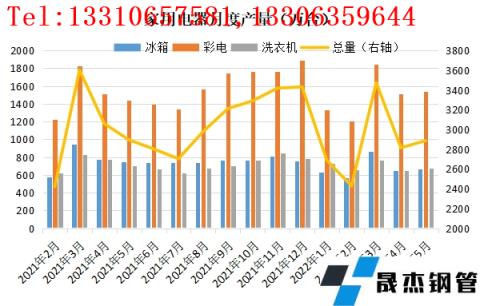 家電版塊產(chǎn)量表現(xiàn)也不甚樂觀。據(jù)國(guó)家統(tǒng)計(jì)局?jǐn)?shù)據(jù)顯示,1-5月全國(guó)冰箱累計(jì)產(chǎn)量3401萬臺(tái),同比下降8.1%;洗衣機(jī)累計(jì)產(chǎn)量3471.7萬臺(tái),同比下降4.1%;彩電累計(jì)產(chǎn)量7441萬臺(tái),同比增長(zhǎng)4.5%。