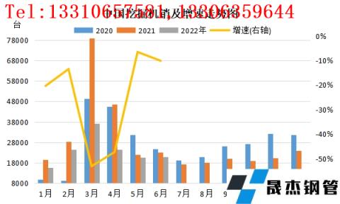 挖掘機(jī)銷量同比下滑明顯。據(jù)中國(guó)工程機(jī)械工業(yè)協(xié)會(huì)行業(yè)數(shù)據(jù)顯示,2022年上半年共銷售各類挖掘機(jī)143094臺(tái),同比下降36.1%。其中,國(guó)內(nèi)市場(chǎng)銷量91124臺(tái),同比下降52.9%;出口銷量51970臺(tái),同比增長(zhǎng)72.2%。分月度數(shù)據(jù)來看,最高值出現(xiàn)在3月份,挖掘機(jī)銷量為37085臺(tái),同比仍存53.1%跌幅,其中國(guó)內(nèi)銷量26556臺(tái),同比減少63.6%;出口10529臺(tái),同比增長(zhǎng)73.5%。最低點(diǎn)出現(xiàn)在1月份,銷量為15607臺(tái),同比下降20.4%。可以看到的是,2022年6月份挖掘機(jī)銷量同比降幅大幅收窄,主要得益于封閉管控對(duì)物流運(yùn)輸造成的影響減弱,以及穩(wěn)增長(zhǎng)政策落地顯效,挖掘機(jī)國(guó)內(nèi)銷量有所改善。