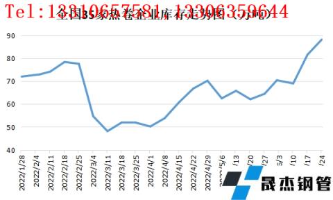 無縫鋼管廠家?guī)齑娣矫嫣幱谙鄬?duì)高位,截止到6月24日網(wǎng)統(tǒng)計(jì)國(guó)內(nèi)35家熱卷企業(yè)無縫鋼管廠家熱卷廠庫(kù)為88.21萬噸,創(chuàng)上半年以來新高。主要原因在于進(jìn)入6月份之后受成材跌勢(shì)加劇利空無縫鋼管廠家虧損情況增多,市場(chǎng)不斷傳出無縫鋼管廠家即將減產(chǎn)消息,但減產(chǎn)后期被證偽,熱卷產(chǎn)量依然處于高位水平;而需求端雖華東區(qū)域疫情解封,但需求依然難有實(shí)質(zhì)性利好改觀的情況,無縫鋼管廠家?guī)齑娉尸F(xiàn)持續(xù)累庫(kù)狀態(tài)。