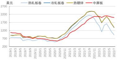 美國經(jīng)濟衰退風(fēng)險上升,制造業(yè)增速連續(xù)回落,加息提高企業(yè)和居民的融資成本,扁平材供需或?qū)⒆呷酰?月份北美市場扁平材價格可能保持弱勢調(diào)整的態(tài)勢。