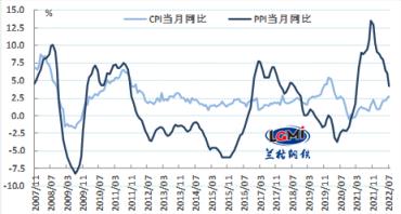 7月份,工業(yè)生產(chǎn)者出廠價格同比漲幅較上月回落1.9個百分點(diǎn),同比漲幅回落速度加快,環(huán)比自今年2月份以來首次下降,且降幅較大。海外主要經(jīng)濟(jì)體經(jīng)濟(jì)增速放緩,貨幣政策持續(xù)收緊,需求收縮壓力加大,后期PPI同比漲幅將保持回落趨勢。