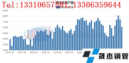 2022年7月份,由于受到淡季下游需求釋放不足、鋼企庫存去庫壓力加大以及鋼企陷入大幅虧損等因素的影響,無縫鋼管廠家的生產(chǎn)積極性明顯下降,厚壁無縫鋼管產(chǎn)量呈現(xiàn)快速回落的態(tài)勢。據(jù)國家統(tǒng)計局?jǐn)?shù)據(jù)顯示,7月份,我國粗鋼產(chǎn)量8143萬噸,同比下降6.4%(詳見圖1);生鐵產(chǎn)量7049萬噸,同比下降3.6%(詳見圖2);厚壁鋼管產(chǎn)量10624萬噸,同比下降5.2%(詳見圖3)。1-7月,我國粗鋼產(chǎn)量60928萬噸,同比下降6.4%;生鐵產(chǎn)量51090萬噸,同比下降4.5%;厚壁鋼管產(chǎn)量77650萬噸,同比下降4.6%。