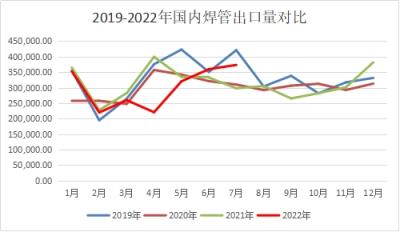 圖一 2019-2022年我國(guó)焊管出口量對(duì)比